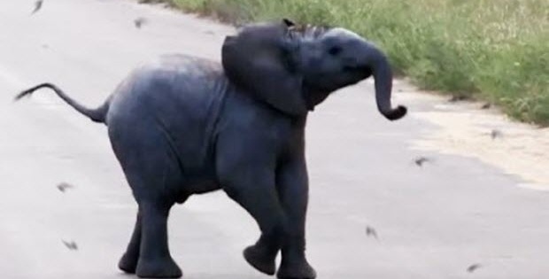 Amazing footage of cute baby elephant who came out of the forest and saw small birds around the forest road. He can’t just stand still or ignore them.